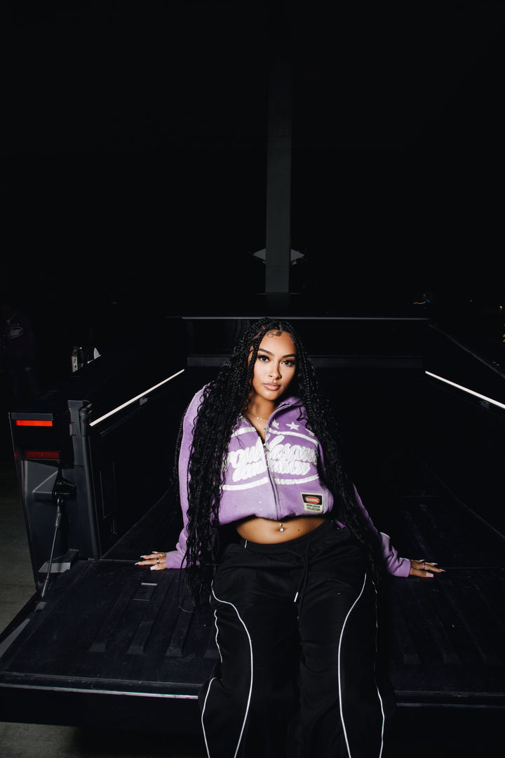 - Details: Acid wash garment, zip up, rhinestones